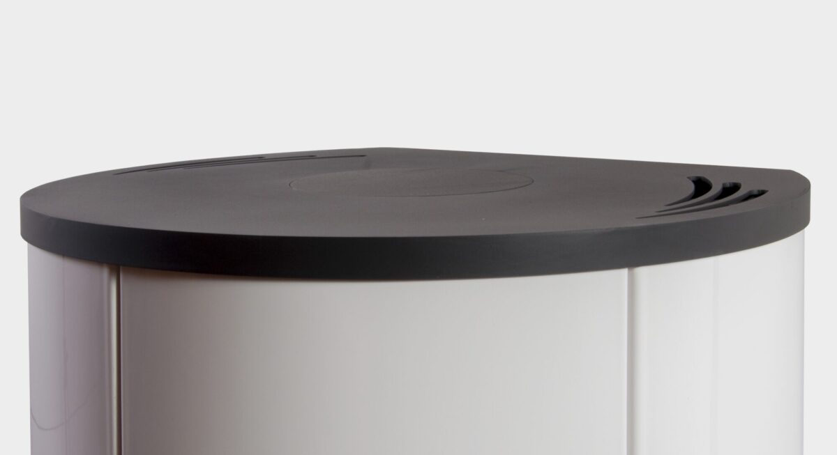 Povrchová úprava je realizovaná ekologickou vodou riediteľnou farbou s tepelnou odolnosťou až do 600°C, čo zaručuje dlhú životnosť a nadčasový vzhľad. Ako obklad je použitá ručne vyrábaná keramika, dostupná v bielej, čiernej lesklej alebo grafitovej matnej čiernej farbe.