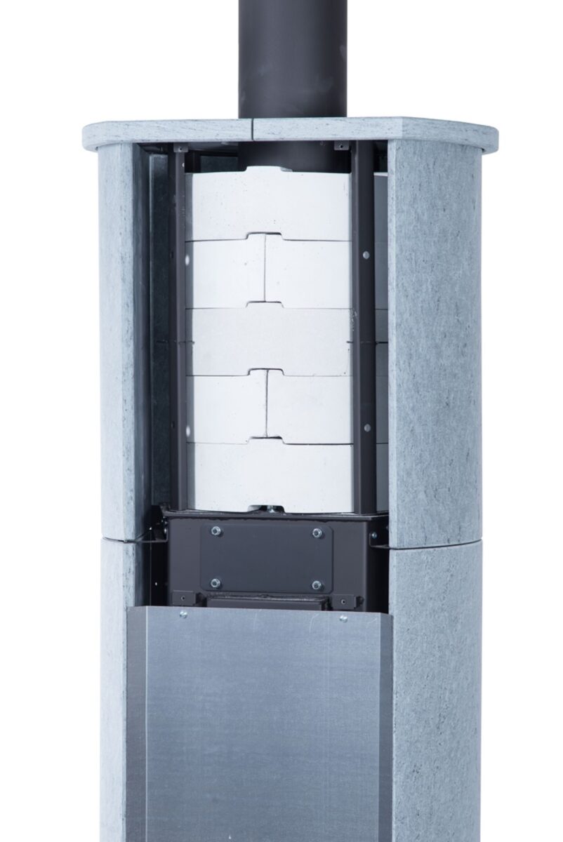 Obklad kachlí je vyhotovený z prírodného kameňa serpentín, ktorý nielen dodáva kachliam exkluzívny vzhľad, ale zároveň akumuluje teplo a postupne ho uvoľňuje do priestoru aj po vyhasnutí ohňa. Tento prírodný materiál zabezpečuje dlhší pocit tepla a prispieva k úspornejšej prevádzke. Pre maximálne využitie tepla po poslednom priložení dreva je možné kachle doplniť akumulačné horné tvarovky na ohnisko, ktoré ešte viac zvyšujú schopnosť kachlí udržať a postupne uvoľňovať teplo do priestoru.