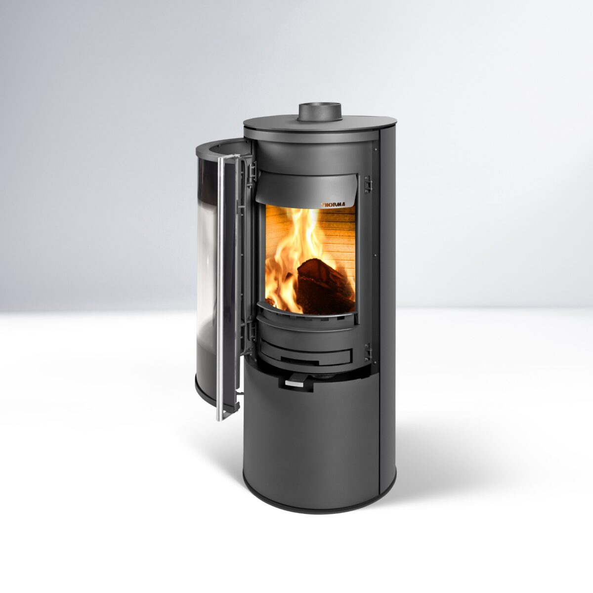 Praktické riešenie pre komfortné používanie – pod ohniskom sa nachádza premyslene navrhnutý priestor na drevo, vďaka ktorému je skladovanie estetické a pohodlné.