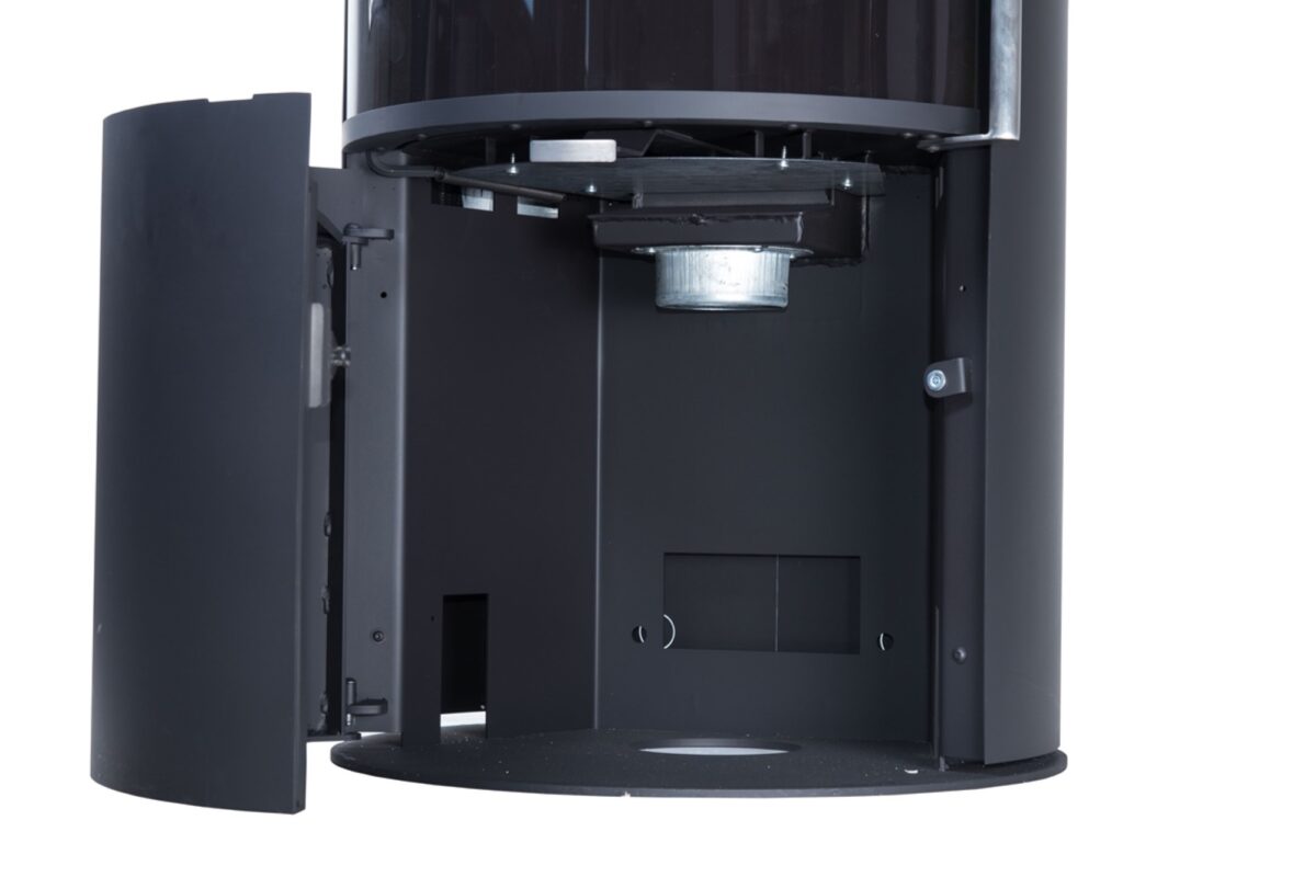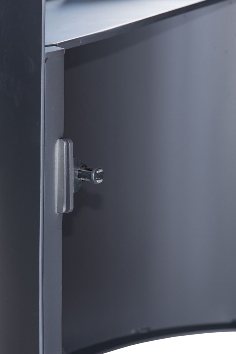 Štýlový dizajn, pôsobivý vizuálny zážitok – oceľová konštrukcia s celopresklenými dvierkami ponúka čisté línie a nerušený pohľad na oheň. Niklovaná rukoväť po celej výške dverí pridáva luxusný dotyk.