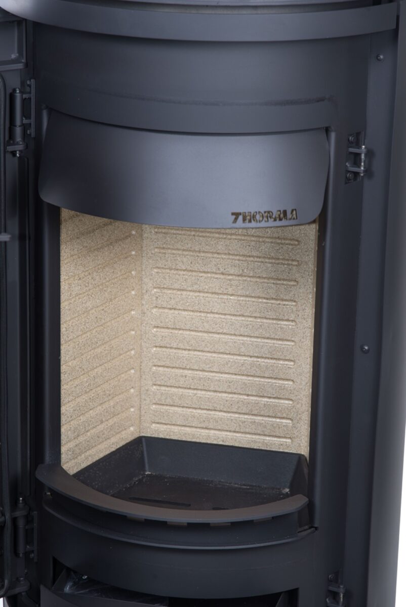 Efektívne spaľovanie, maximálna účinnosť – vnútorná výmurovka z vermikulitu a liatinový rošt zaručujú vysokú efektivitu horenia. Externý prívod vzduchu, napojiteľný zo spodnej alebo zadnej strany, zabezpečuje optimalizovaný proces spaľovania. Napojenie dymovodu je možné z hornej strany, čím sa zabezpečuje flexibilná inštalácia.